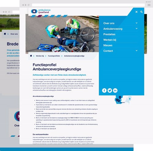 Om goede ambulancezorg te kunnen bieden, heb je de juiste mensen nodig. De website is dan ook een belangrijk medium om vacatures te etaleren en geïnteresseerden een indruk te geven van de organisatie.