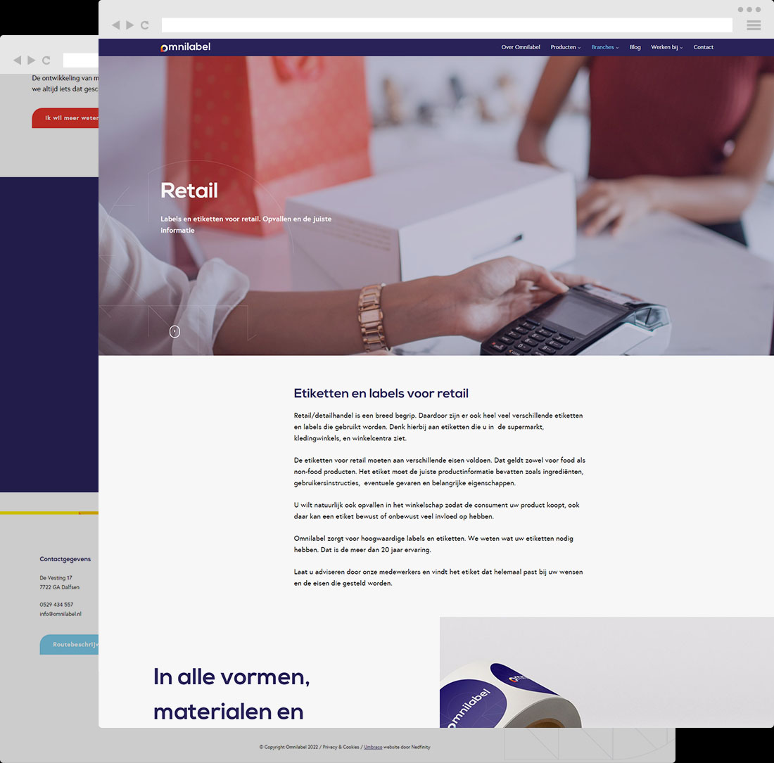 Op maat gemaakte zelfklevende etiketten en labels, die vind je bij Omnilabel. Deze zelfstandige gespecialiseerde drukkerij uit Dalfsen levert hun unieke producten al ruim 25 jaar. Recent werd hun huisstijl volledig vernieuwd. En vanuit deze vernieuwde huisstijl met nieuw logo en nieuwe kleuren, mocht Nedfinity aan de slag met het ontwikkelen van de nieuwe website.