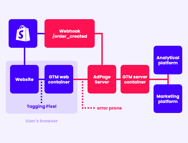 Als je serieus werk wilt maken van Server-Side Tagging, dan is AdPage dé tool die je nodig hebt. Deze Nederlandse oplossing is speciaal ontwikkeld voor e-commerce bedrijven die hun tracking willen professionaliseren. Met AdPage meet je tot wel 100% van je conversies, zelfs wanneer bezoekers adblockers gebruiken of third-party cookies worden geweigerd.